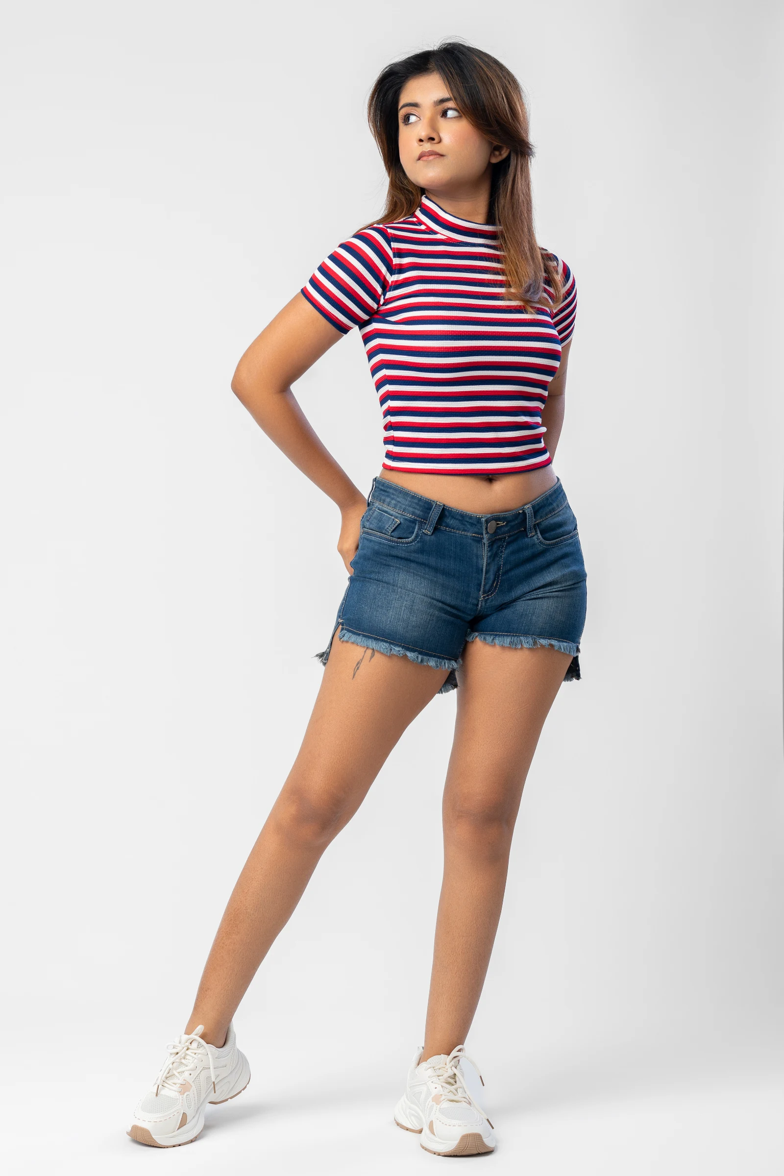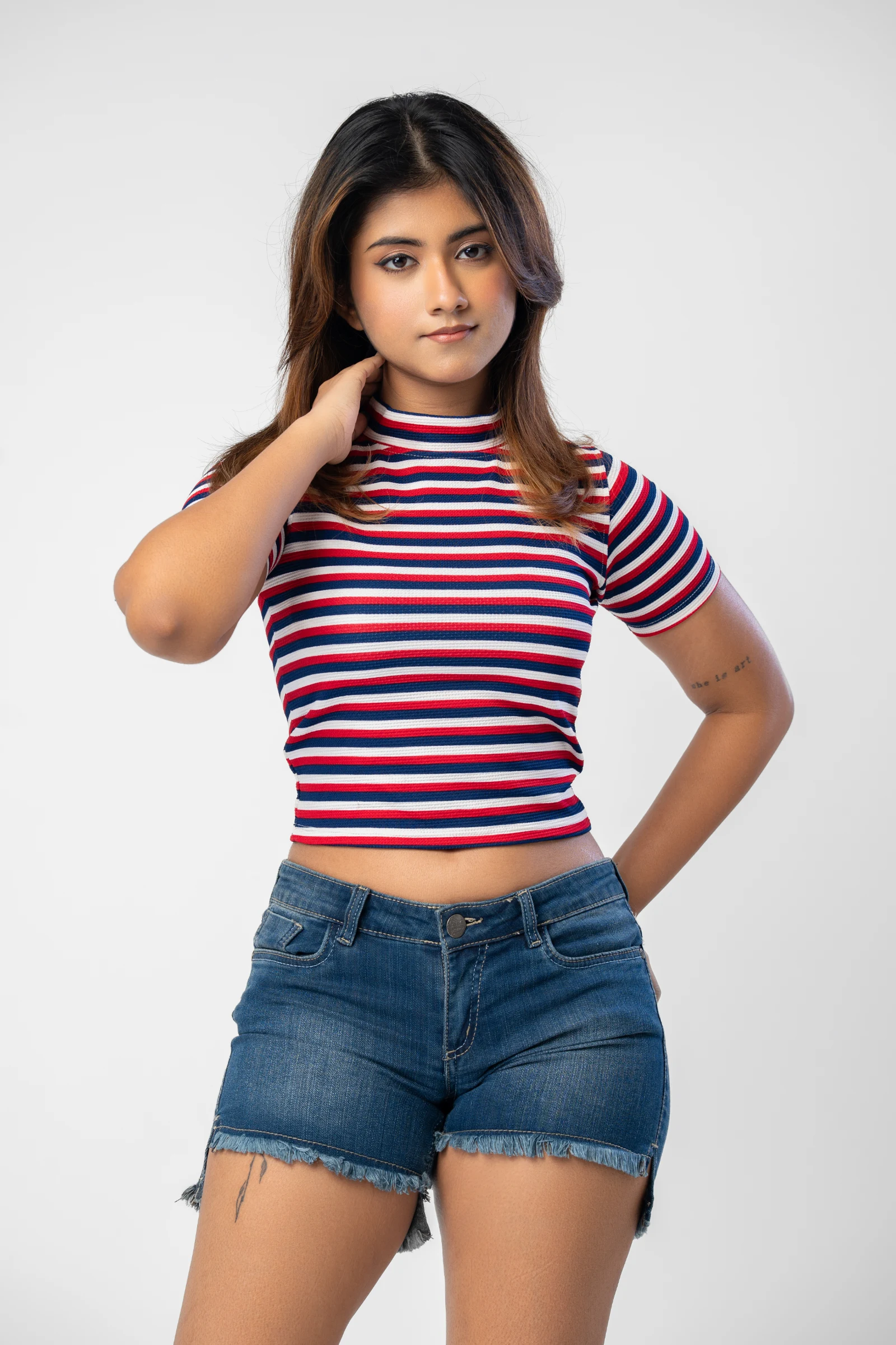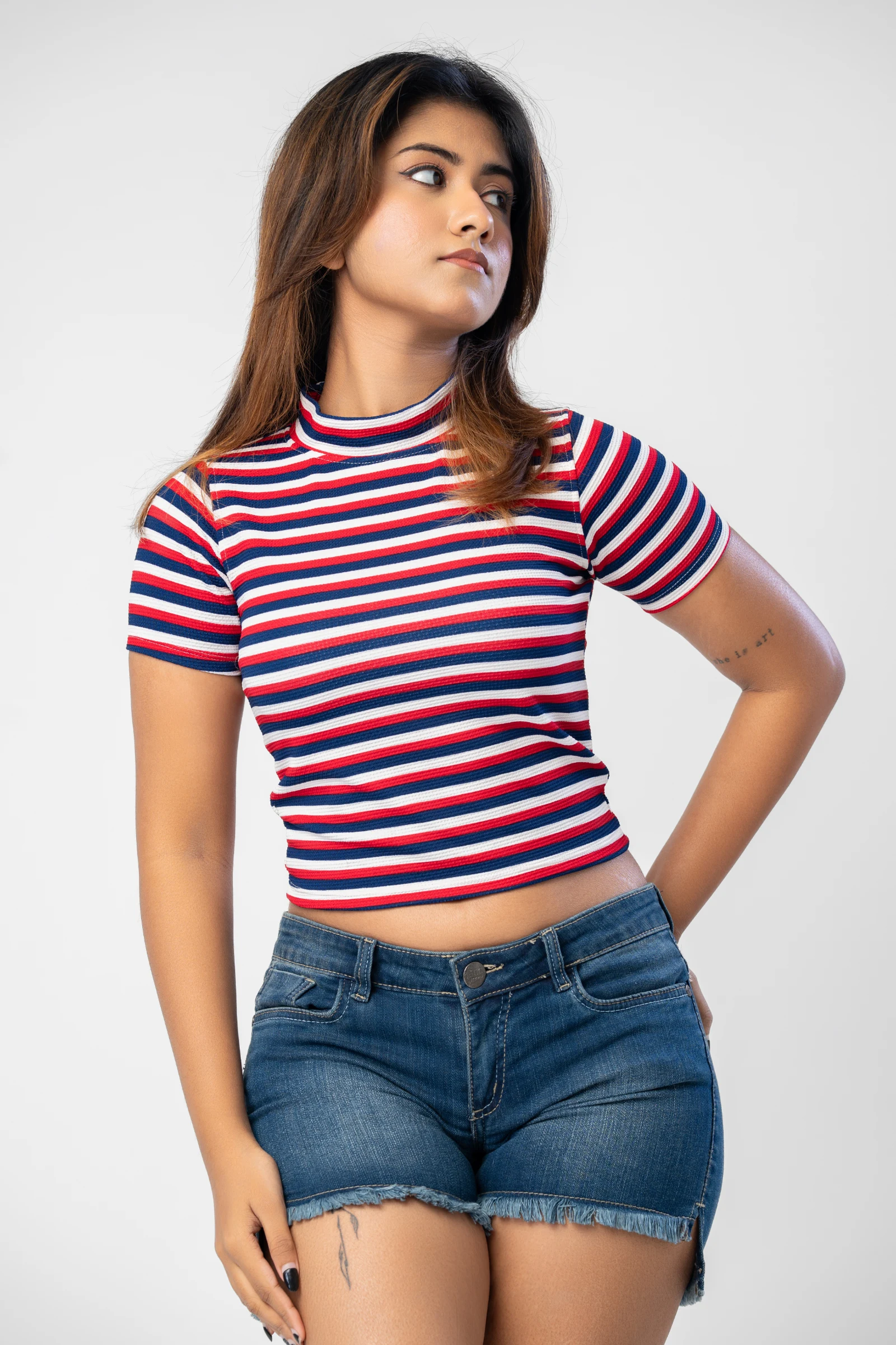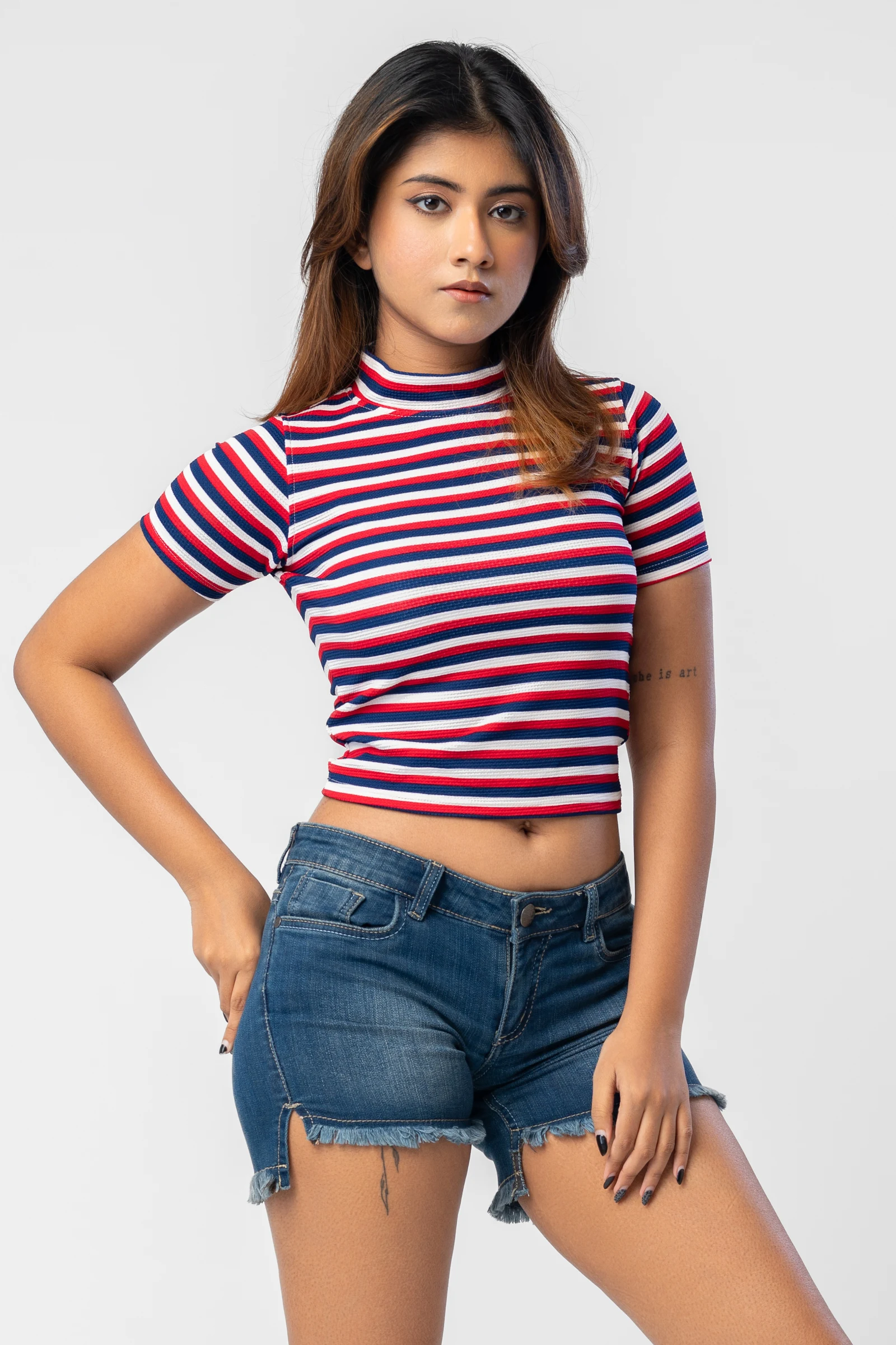 Tee Love High Neck Stripe Crop Top - 高品质产品